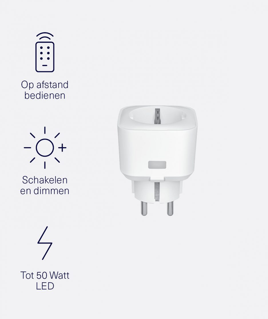 De ACC-250LD werkt met alle dimbare LED-lampen (tot 50W) en gloei- of halogeenverlichting (tot 250W). Je plaatst de dimmer simpelweg in het stopcontact, steekt de stekker van je lamp erin, en je bent klaar om te koppelen met je favoriete KlikAanKlikUit-zenders.
