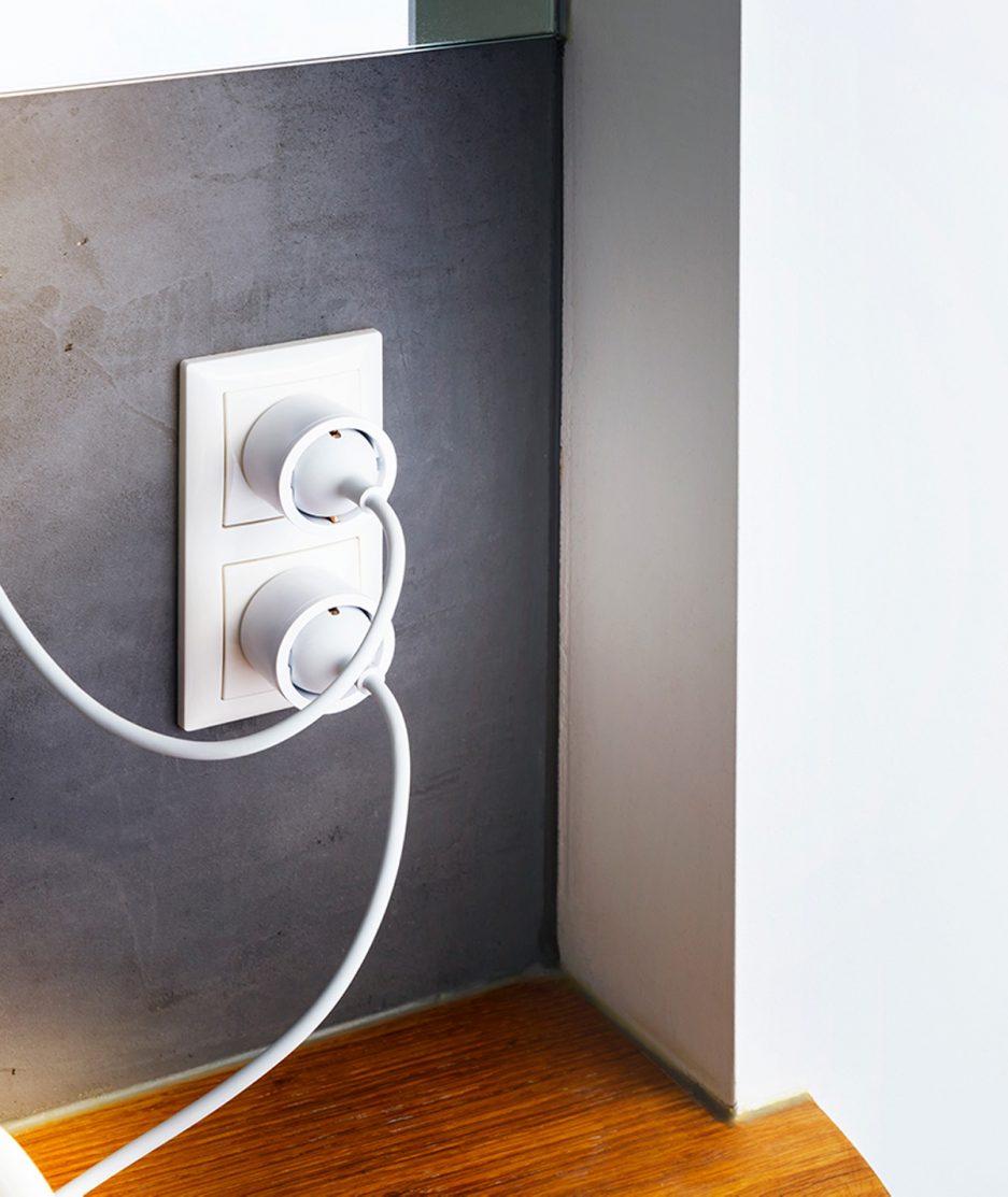 Compact Design: De behuizing is zo smal ontworpen dat hij niet in de weg zit voor andere stekkers in een dubbel stopcontact of stekkerblok.