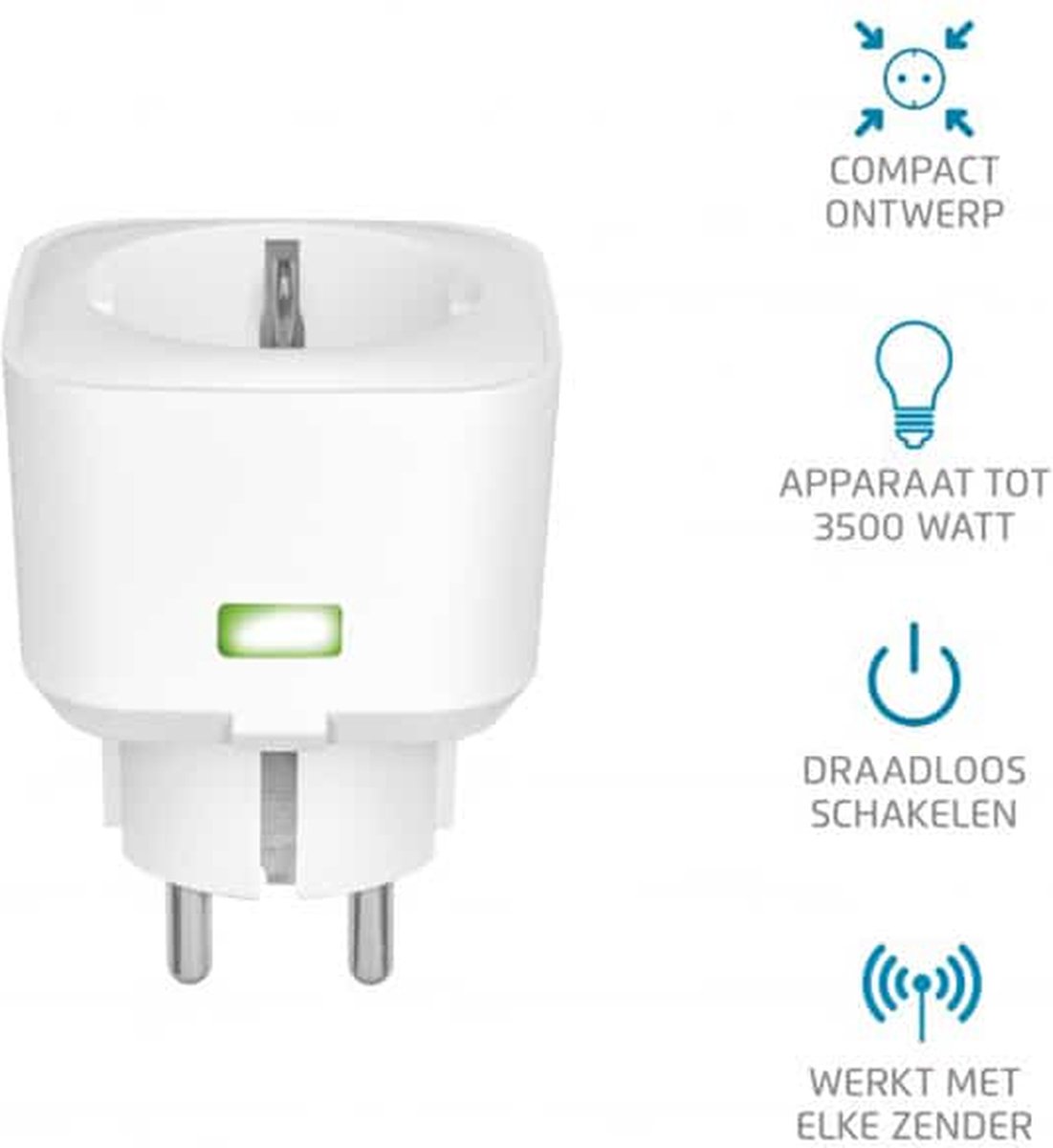 Neem contact opMet de KlikAanKlikUit ACC-3500 voeg je in een handomdraai slimme bediening toe aan elk apparaat in huis. Deze compacte stekkerdoos-schakelaar is ontworpen om zware belastingen tot wel 3500 Watt aan te kunnen. Of het nu gaat om een elektrische kachel, een frituurpan, een wasmachine of simpelweg je favoriete staande lamp: met de ACC-3500 schakel je alles draadloos aan en uit.