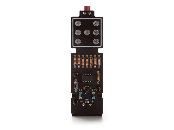 Neem contact opDeze elektronische dobbelsteen brengt speelplezier naar een hoger niveau. De soldeerkit bestaat uit een stijlvolle zwarte en ergonomisch gevormde printplaat. Een ingebouwde knop zorgt voor een roleffect en de 7 rode leds geven een willekeurig getal weer tussen 1 en 6, net zoals een echte dobbelsteen! Om de 9 V-batterij (niet meegeleverd) te sparen, schakelt de kit zichzelf automatisch uit wanneer deze niet wordt gebruikt.