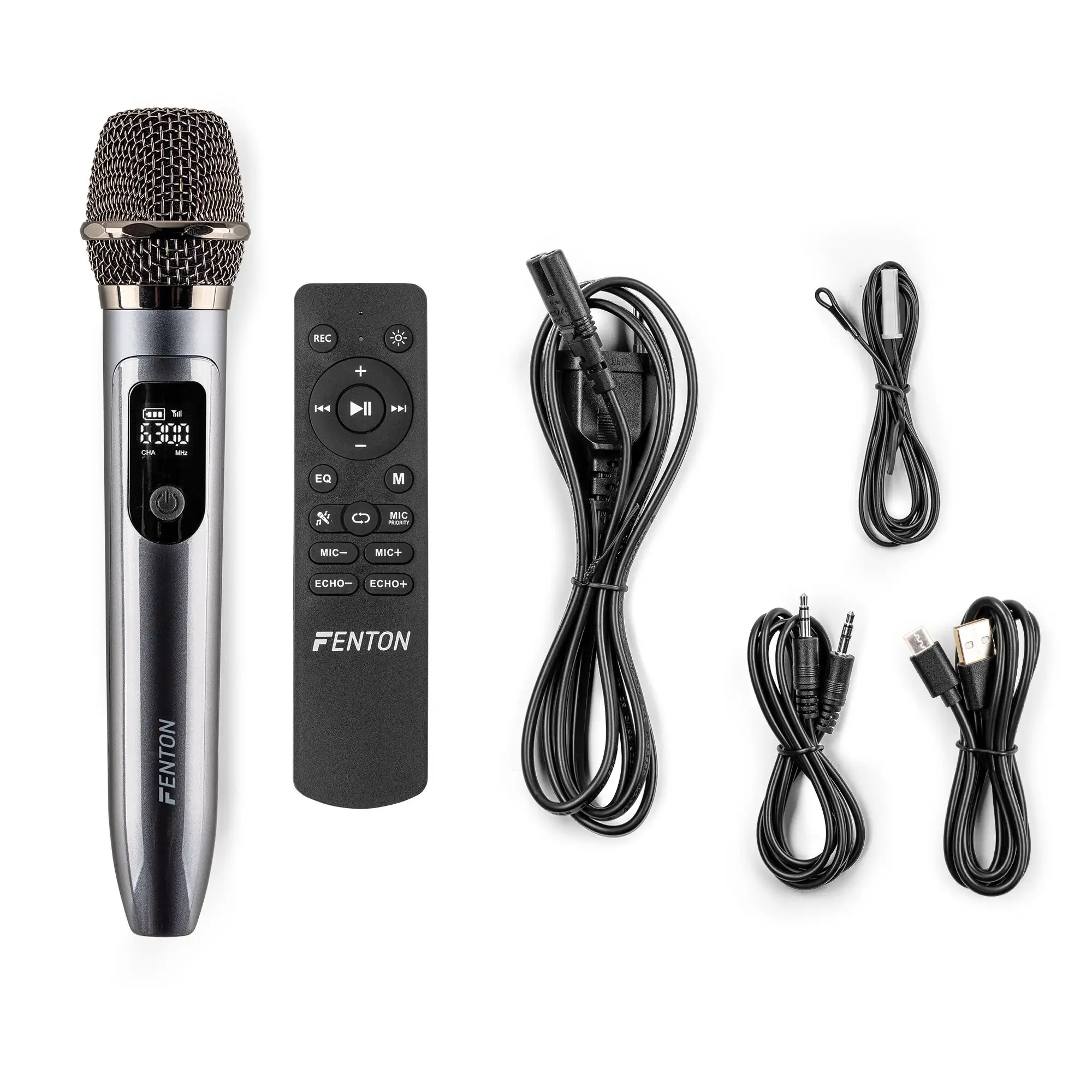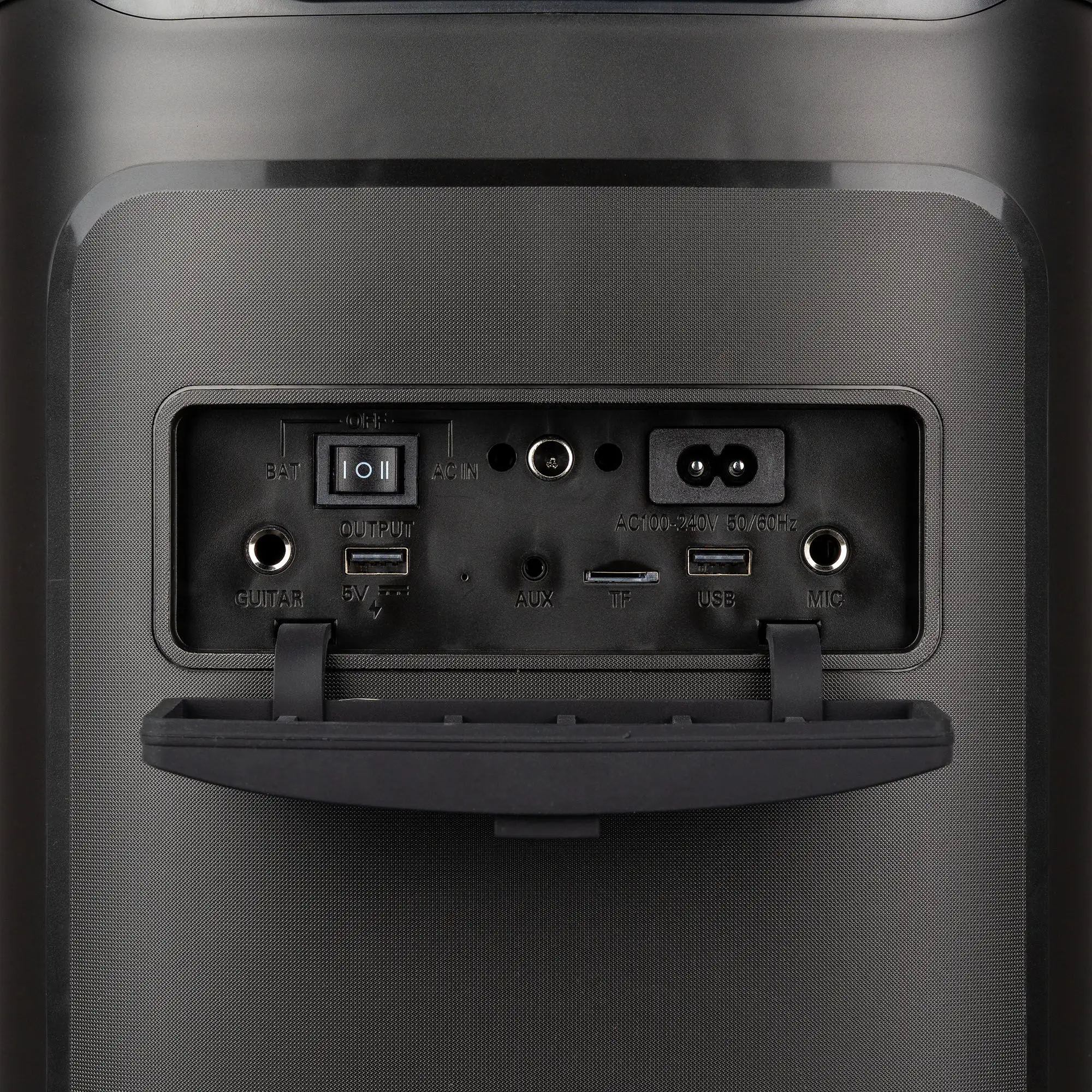 De Pulse130 is licht in gewicht dus je kunt de partybox eenvoudig naar elke locatie meenemen. Deze krachtige partyspeaker wordt geleverd met een hoogwaardige draadloze UHF-microfoon, waarmee jij jouw zangkunsten kunt laten horen als een echte karaoke-koning. Dankzij de opnamefunctie kun je je stemgeluid direct opnemen en opslaan op een USB-stick. De accu biedt niet alleen urenlang luisterplezier, maar kan ook als powerbank dienen om je telefoon op te laden, wat ideaal is voor buitenfeestjes. Bediening is bovendien ook mogelijk met de meegeleverde afstandsbediening.