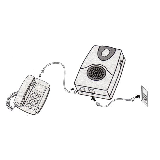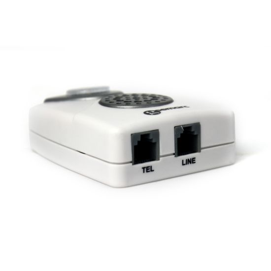 - Gebruiksgemak: Dit compacte apparaatje (6 x 3 x 8 cm) werkt volledig zonder batterijen. U sluit hem eenvoudig aan tussen de telefoon en de wandcontactdoos.
