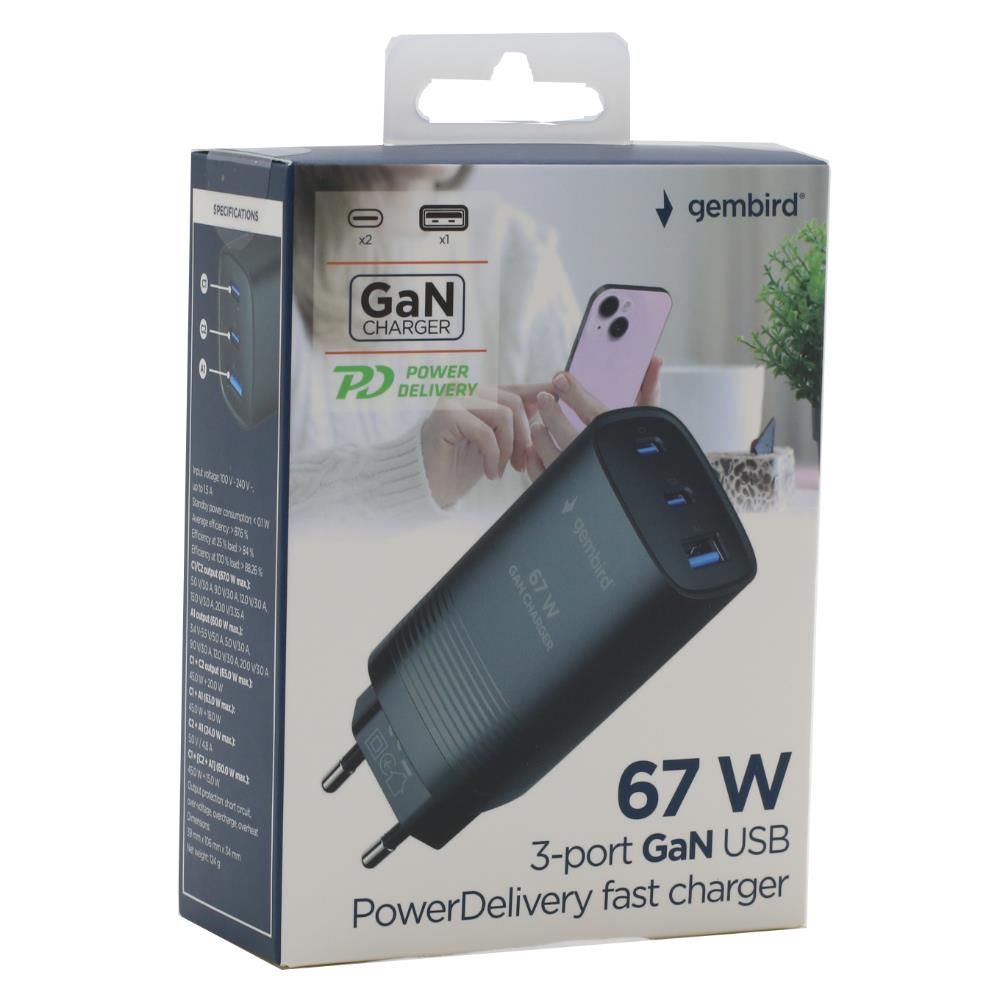 Neem contact opLaad al je apparaten razendsnel en veilig op met de Gembird 67W snellader. Deze krachtige lader beschikt over 1× USB-A en 2× USB-C poorten, geschikt voor smartphones, tablets en laptops. Dankzij de ondersteuning van Power Delivery (PD) en Quick Charge 3.0 (QC) levert deze lader altijd de optimale laadsnelheid per apparaat.