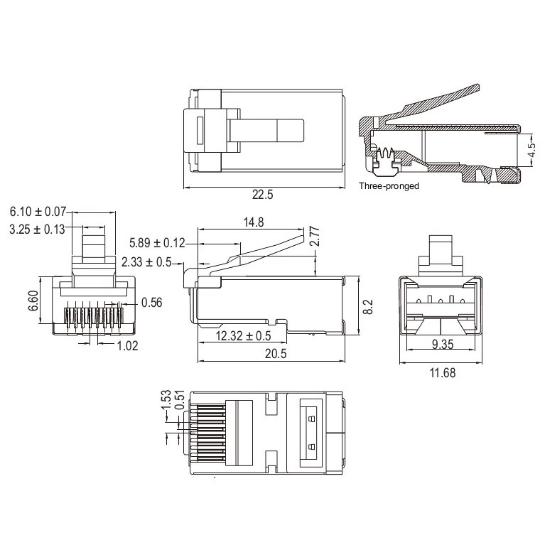 RJ45 stekker (8P8C) voor het zelf aanleggen van netwerkkabels