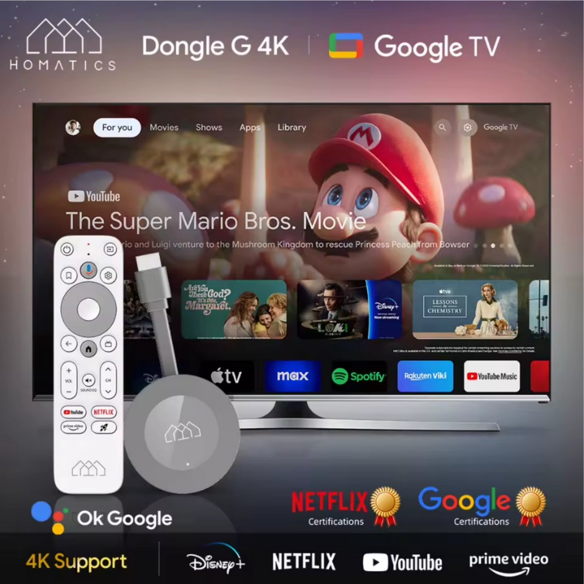 Neem contact opHomatics Dongle G 4K Google TV is een 4K UHD streamingapparaat met Google-certificering voorzien van het nieuwste Google TV-besturingssysteem (versie 11) en is ook nog eens een 4K Chromecast. Dit compacte apparaat verandert elke tv in een krachtige Smart TV. Met de AMLogic S905Y4-processor met 16500DMIPS, 2GB LPDDR4 RAM en 8GB eMMC Flash is dit een superkrachtige Dongle met snelle reactietijden.