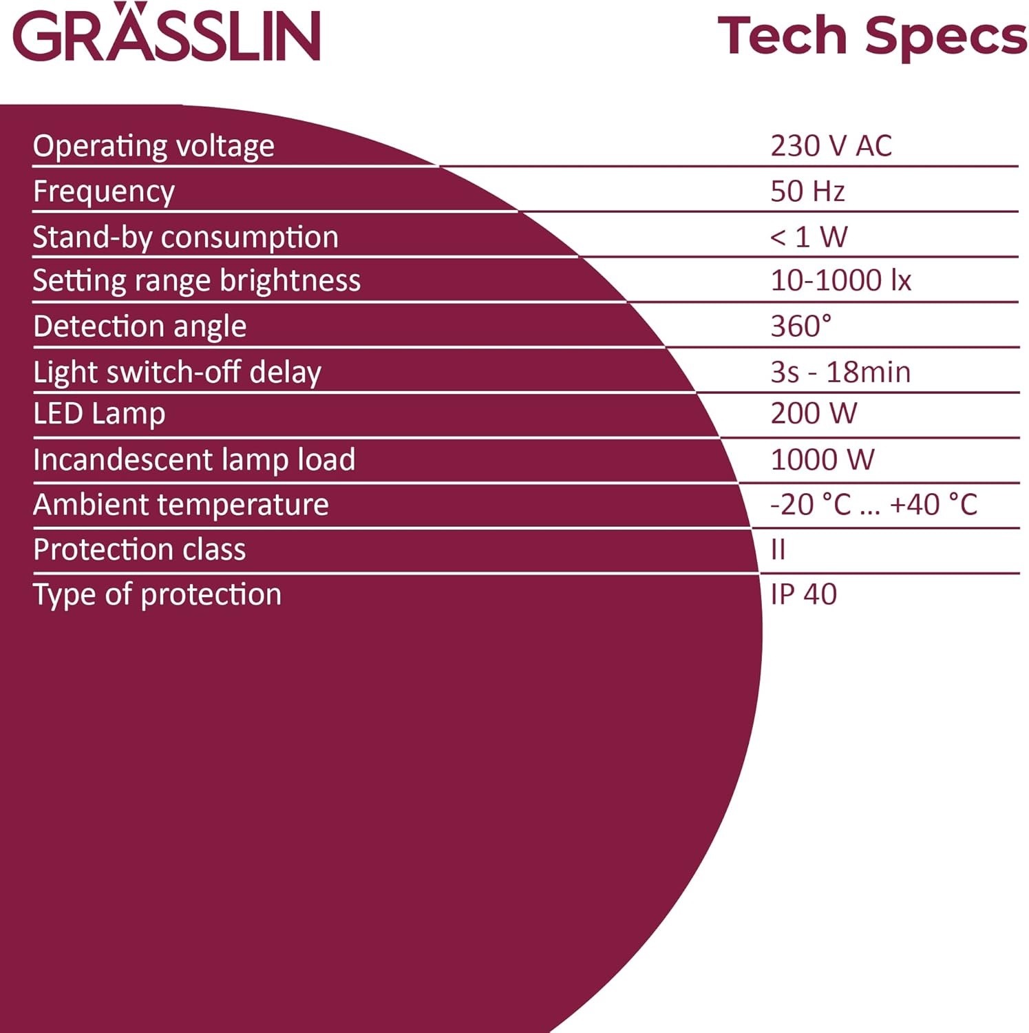 Met een detectiehoek van 360° en een bereik tot 6 meter dekt de Talis 360 A moeiteloos een volledige ruimte af. De sensor schakelt verlichting nauwkeurig en betrouwbaar – geschikt voor LED’s tot 200 W en halogeenlampen tot 1000 W bij een bedrijfsspanning van 230 V AC.
