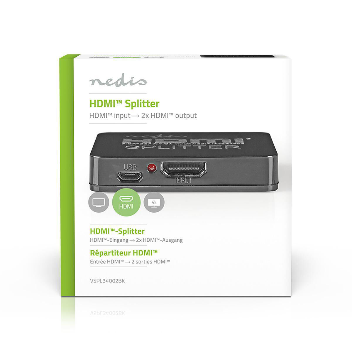 HDMI-Splitter | 2 poort(en) | HDMI Input | 2x HDMI Output | 4K@30Hz | 2.25 Gbps | ABS / PVC | Zwart