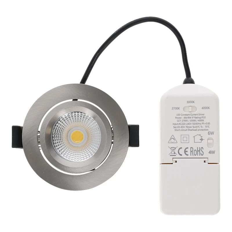 - Wattage Switch: Met een schakelaar op de achterzijde stel je het gewenste wattage in tussen 4 Watt en 6 Watt.