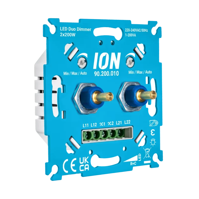 Neem contact opDe LED Duo Dimmer 2×0.3-200 Watt is een veelzijdige en krachtige oplossing van ION INDUSTRIES, waarmee je twee afzonderlijke lichtgroepen perfect kunt dimmen, elk tot 200 Watt per dimmer.