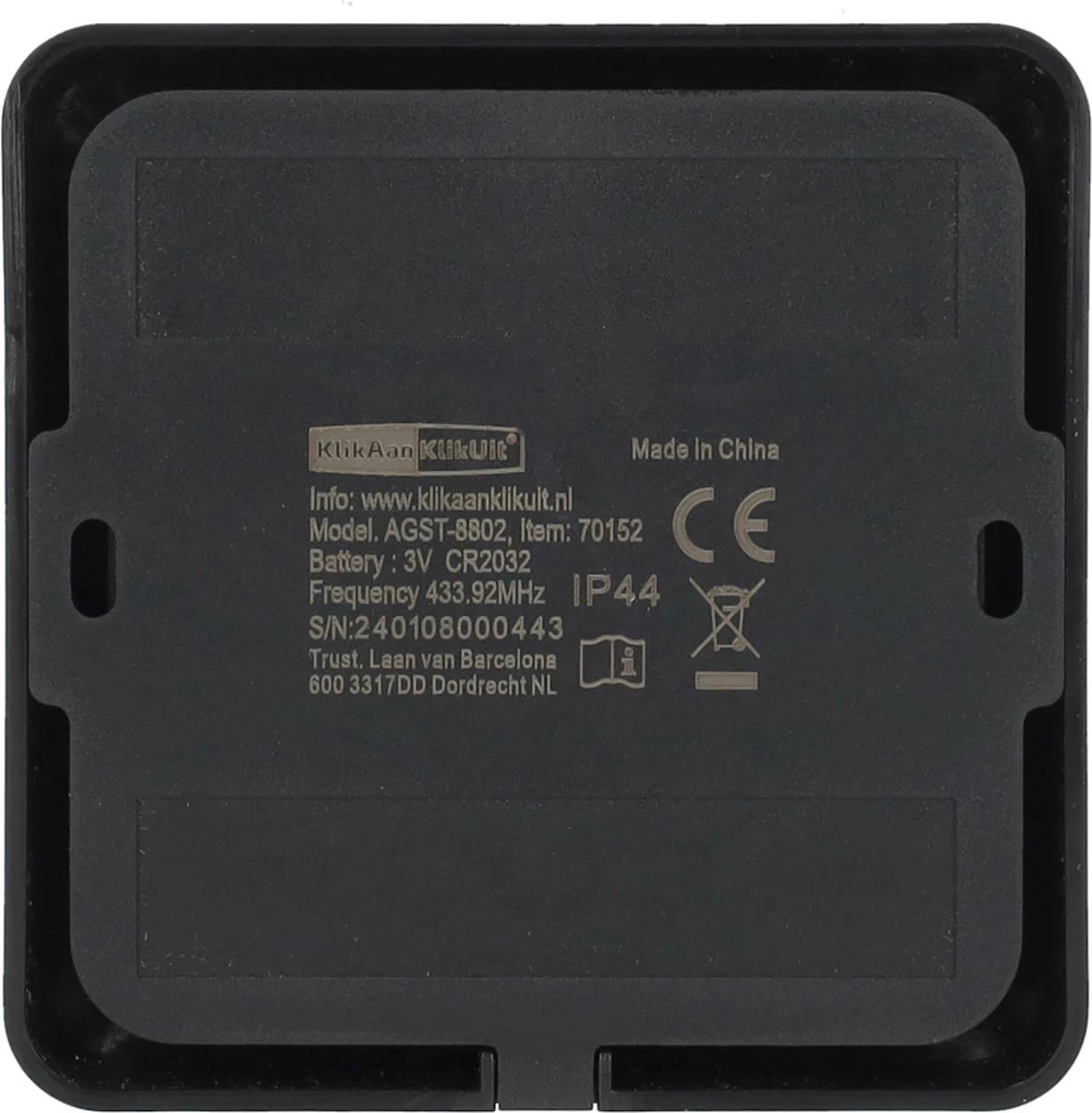 Neem contact opMet de KlikAanKlikUit AGST-8802 voeg je op elke gewenste plek in huis een dubbele schakelaar toe. Omdat deze schakelaar op batterijen werkt en draadloos communiceert, hoef je geen gaten te boren voor bedrading. De antracietkleurige afwerking zorgt voor een moderne, luxe uitstraling die perfect past bij hedendaagse interieurs.