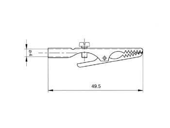 Krokodilklem van vernikkeld staal met een klembereik van 12 mm. De klem is uitgevoerd met schroef- en soldeeraansluiting met 4 mm diameter. Geschikt tot 60 V en 4 A; CAT I.