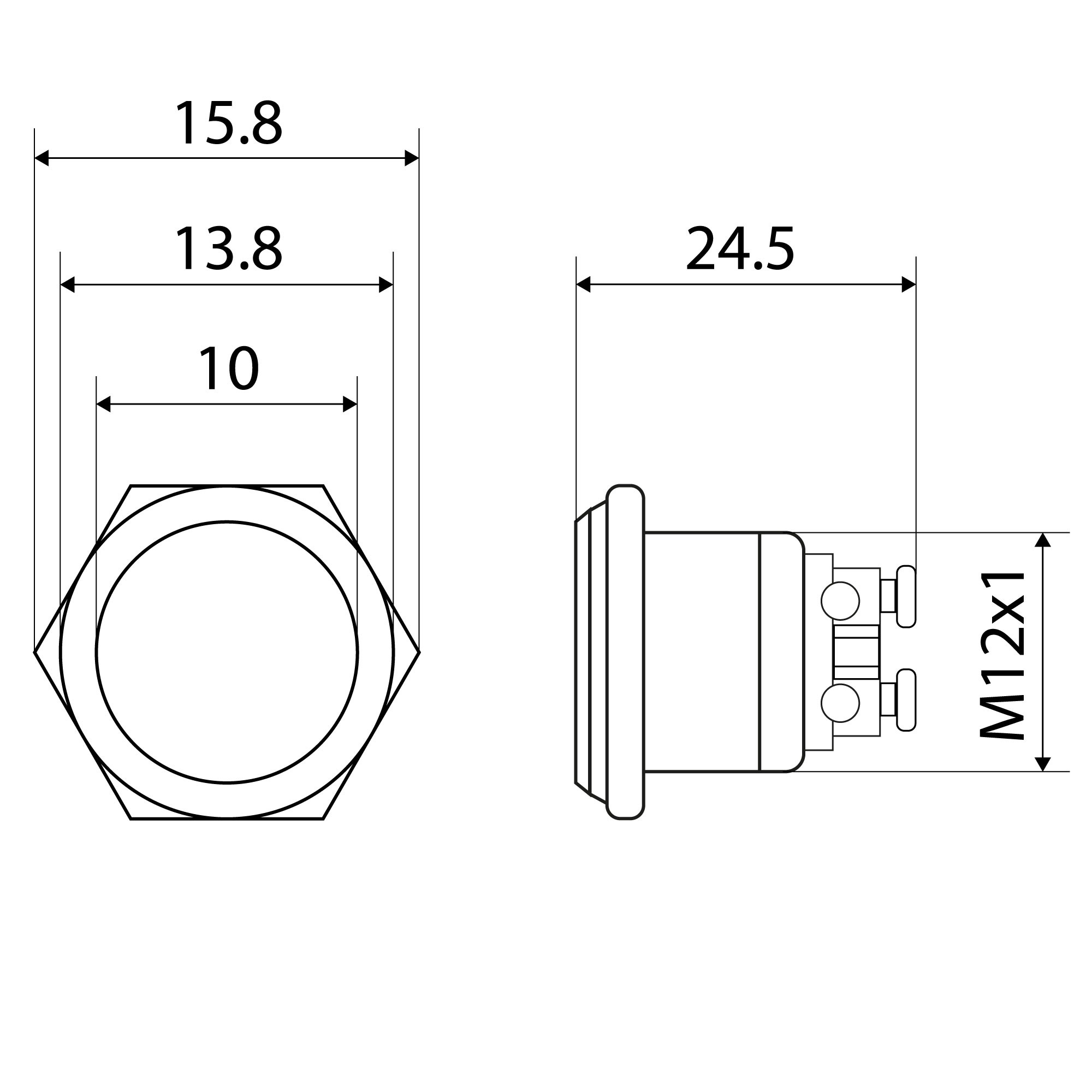 Neem contact opIndicator met LED-verlichting – RVS V2A | IP67 | Ø12mm