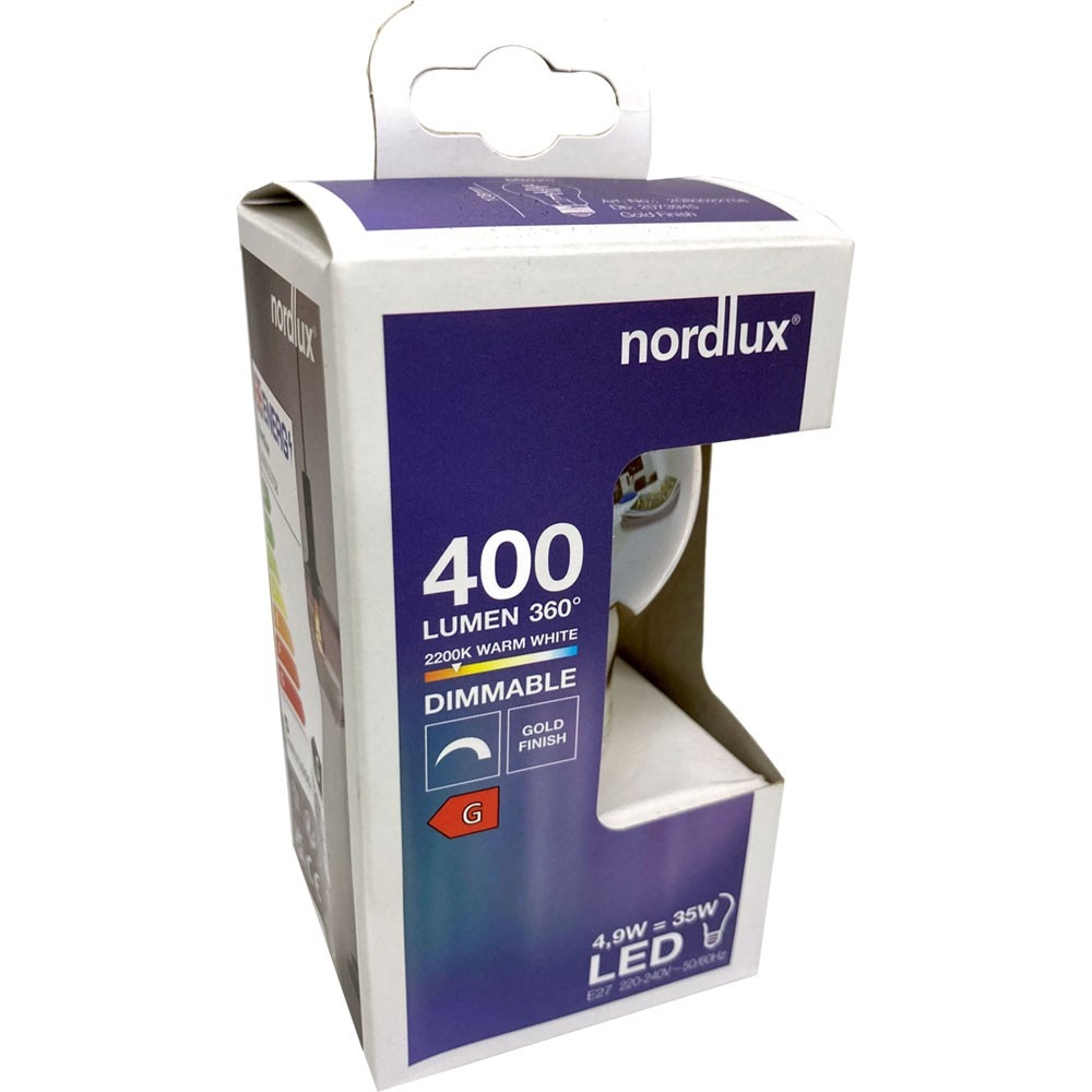 Met een kleurtemperatuur van 2200K (Extra Warm Wit) creëert deze lamp een intieme en gezellige ambiance die doet denken aan de klassieke kooldraadlampen van vroeger. Met een verbruik van slechts 4.9W genereert de lamp een lichtopbrengst van 400 lumen, wat vergelijkbaar is met de kracht van een traditionele 35W tot 40W gloeilamp.