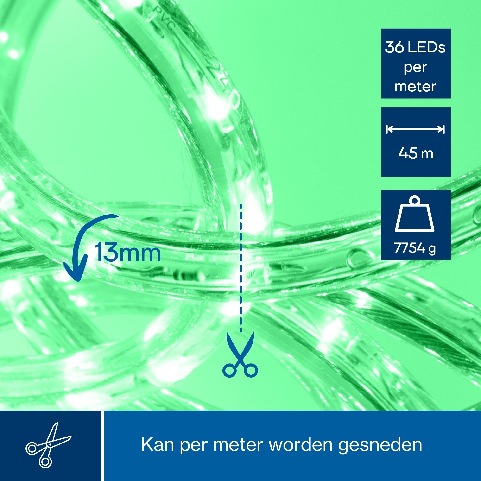 Neem contact opDeze groene LED-lichtslang op een volle rol van 45 meter biedt krachtige, gelijkmatige en sfeervolle verlichting voor zowel binnen- als buitentoepassingen. De levendige groene lichtkleur geeft een uitgesproken decoratief effect en is ideaal voor feestverlichting, tuinen, gevels, terrasoverkappingen, winkelpresentaties en evenementen.