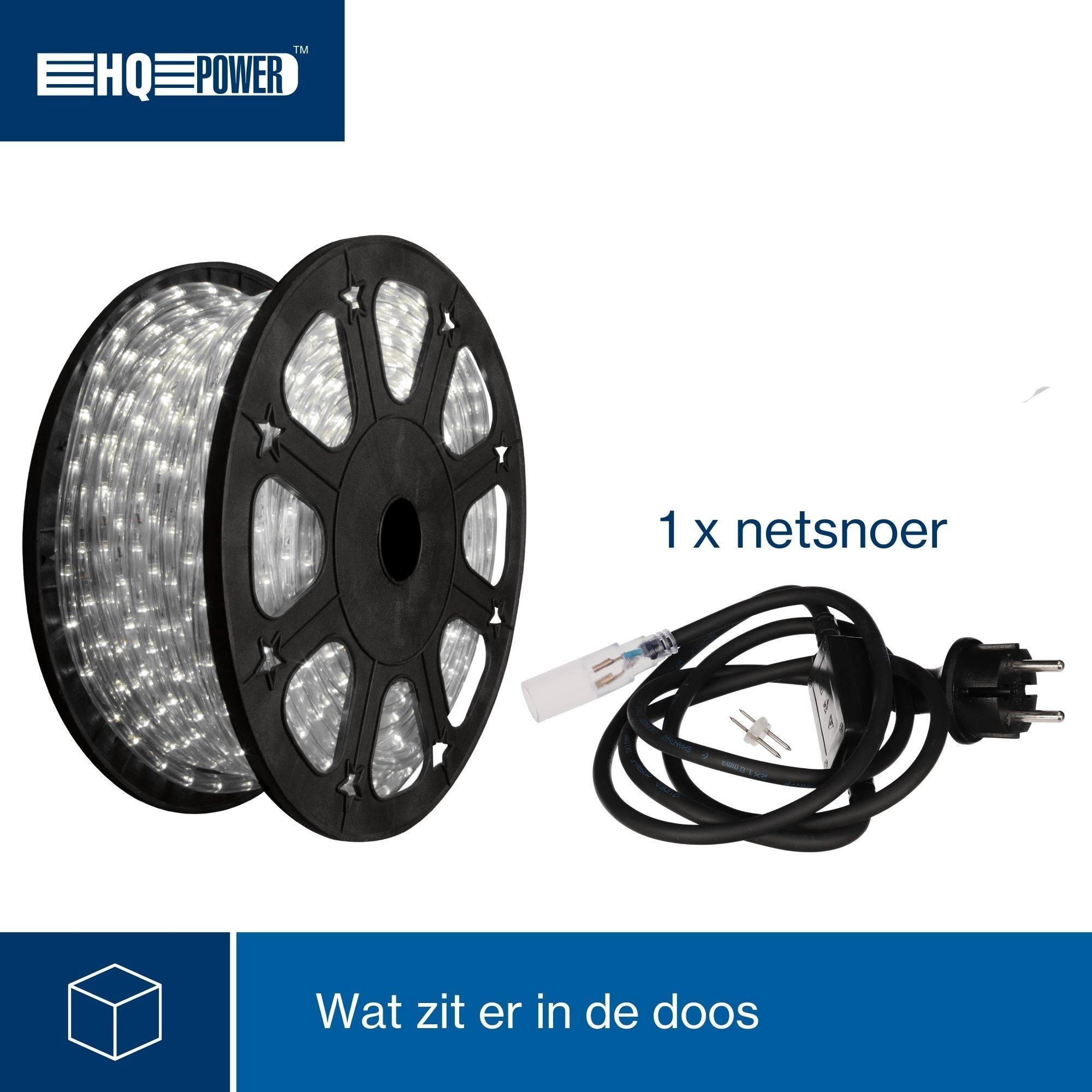 Bij deze rol lichtslang is een 230V aansluitsnoer reeds voor gemonteerd, evenals een kunststof einddop aan het einde van de rol. Wanneer u de slang in meerdere delen wenst te knippen heeft voor elke lengte die u maakt een extra 230V aansluitsnoer nodig. Bij aanschaf van dit aansluitsnoer is lijm, krimpkous, en een einddop ingesloten. Voor het strak afwerken van de lichtslang is tevens een transparante kunststof montagegoot beschikbaar. Hierdoor gaat de slang na verloop van tijd niet doorhangen, maar blijft hij mooi op zijn plek.