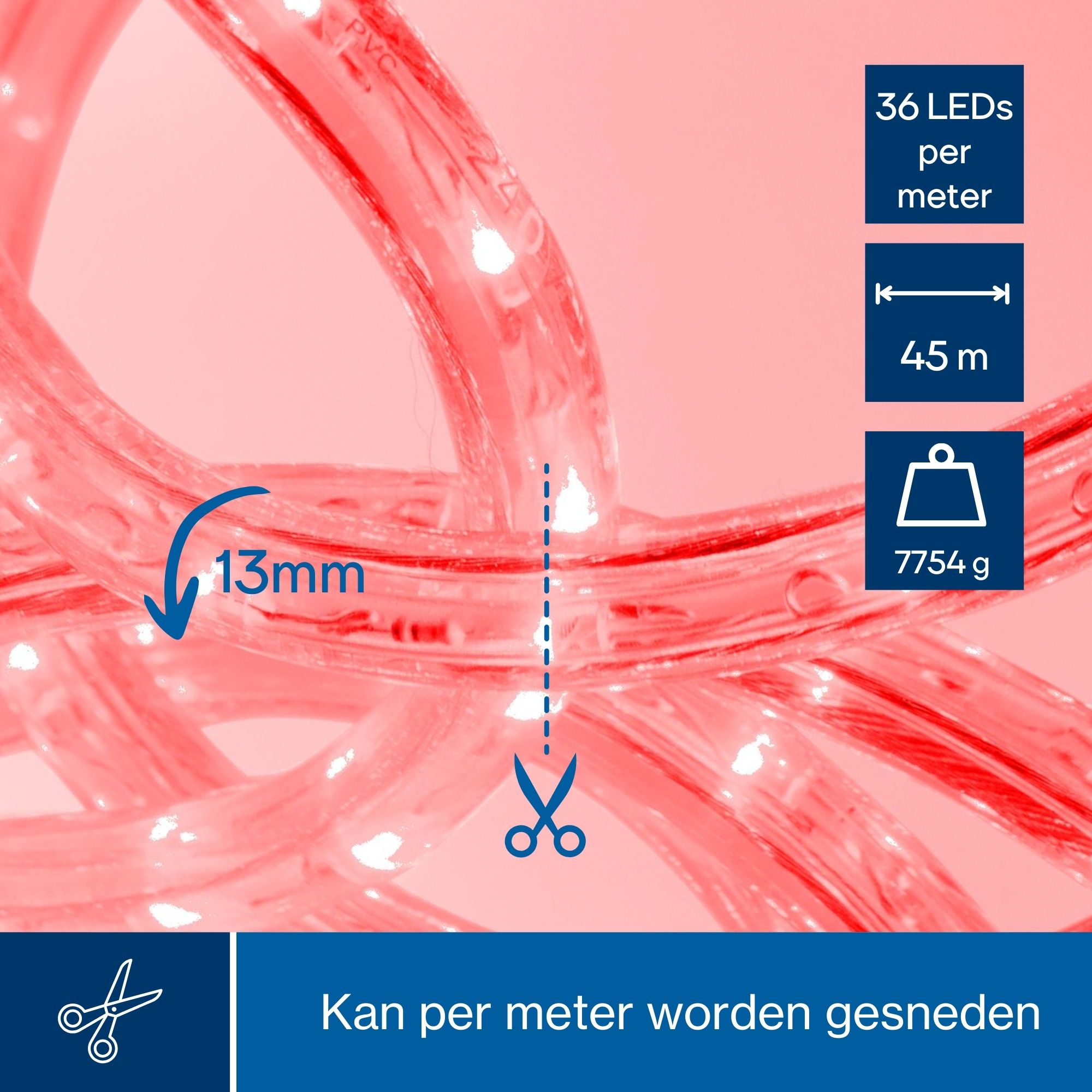 Neem contact opDeze rode LED-lichtslang op een volle rol van 45 meter is dé keuze voor opvallende, sfeervolle en decoratieve verlichting. De krachtige dieprode lichtkleur zorgt voor een warm, intens en uitnodigend effect, perfect voor feestdecoraties, horeca, tuinen, gevels, etalages, thema-avonden en evenementen.