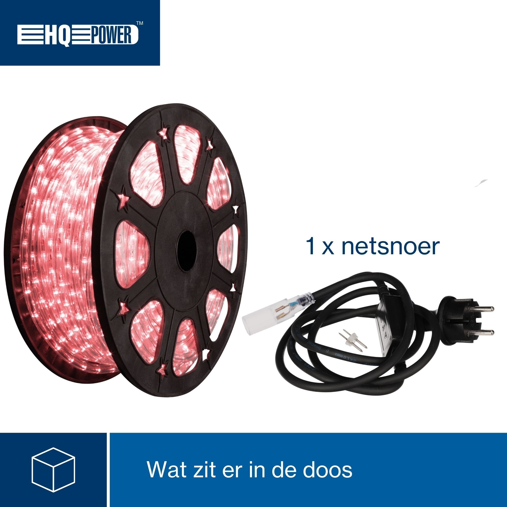 Bij deze rol lichtslang is een 230V aansluitsnoer reeds voor gemonteerd, evenals een kunststof einddop aan het einde van de rol. Wanneer u de slang in meerdere delen wenst te knippen heeft voor elke lengte die u maakt een extra 230V aansluitsnoer nodig. Bij aanschaf van dit aansluitsnoer is lijm, krimpkous, en een einddop ingesloten. Voor het strak afwerken van de lichtslang is tevens een transparante kunststof montagegoot beschikbaar. Hierdoor gaat de slang na verloop van tijd niet doorhangen, maar blijft hij mooi op zijn plek.