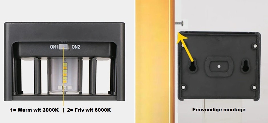 Dual-Color Technologie: Kies met één schakelaar tussen 3000K (Warm Wit) voor een gezellige sfeer of 6000K (Daglicht Wit) voor optimale zichtbaarheid en veiligheid.