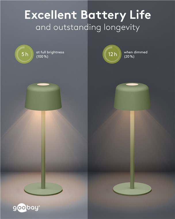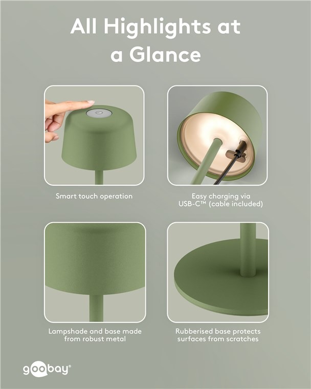 Stijlvolle vrijheid met de Goobay LED Tafellamp oplaadbaar 2W 3000K groen
