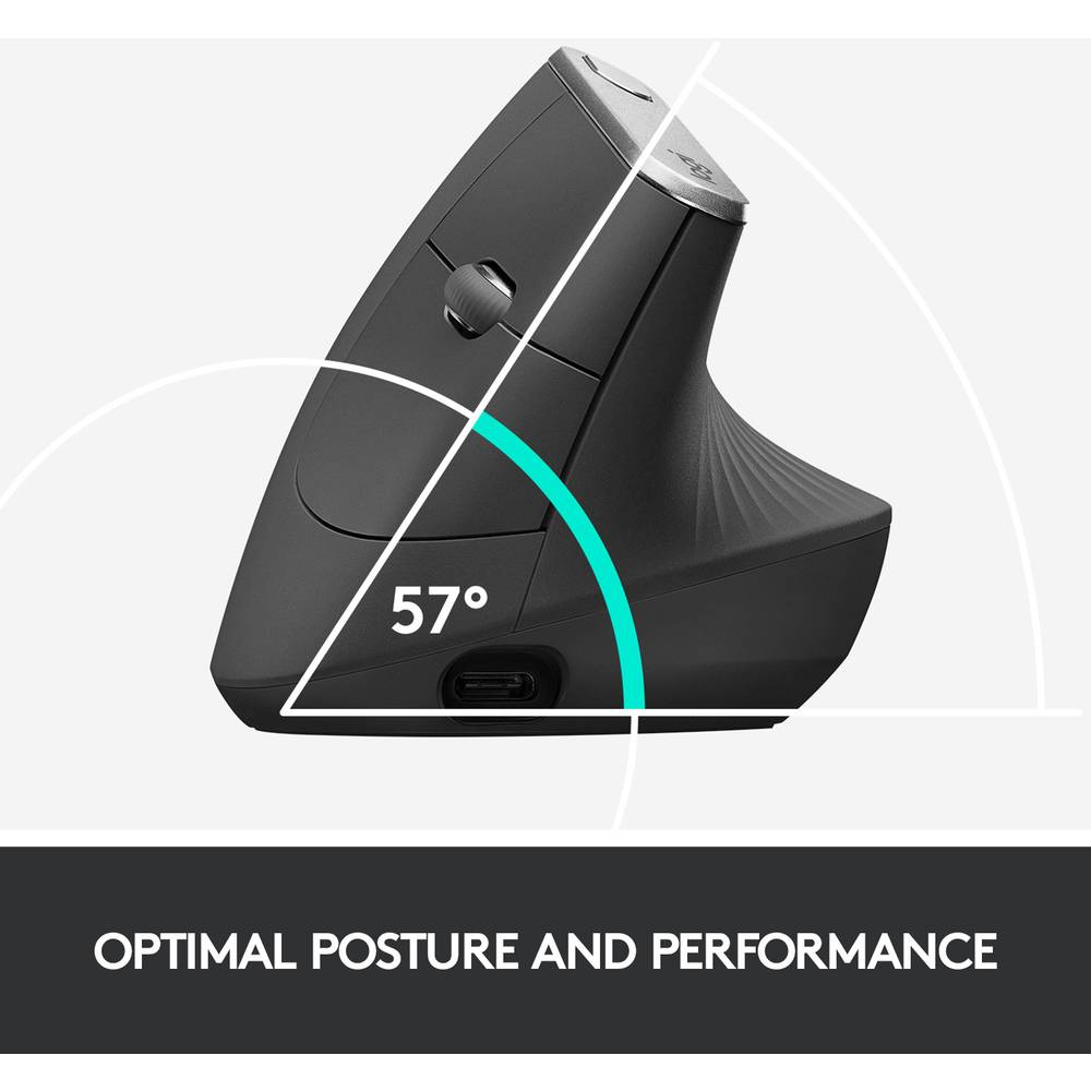 De Logitech MX Vertical is een geavanceerde ergonomische muis die wetenschap combineert met de topprestaties van de Logitech MX-serie. Ontworpen om spierspanning te verminderen en de polsdruk te verlagen, biedt deze muis een natuurlijke handdrukpositie van 57°. Dit unieke ontwerp verbetert de houding zonder in te leveren op precisie of productiviteit.