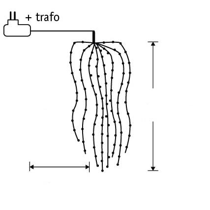 Creëer een betoverende sfeer met deze elegante hangende LED-tak met 288 warm witte micro-LED’s. De verlichting bestaat uit 24 watervalstrengen van 100 cm, die samen zorgen voor een prachtig glinsterend lichteffect — ideaal om een magische kerstsfeer te creëren aan een muur, raam, balkon of gevel.