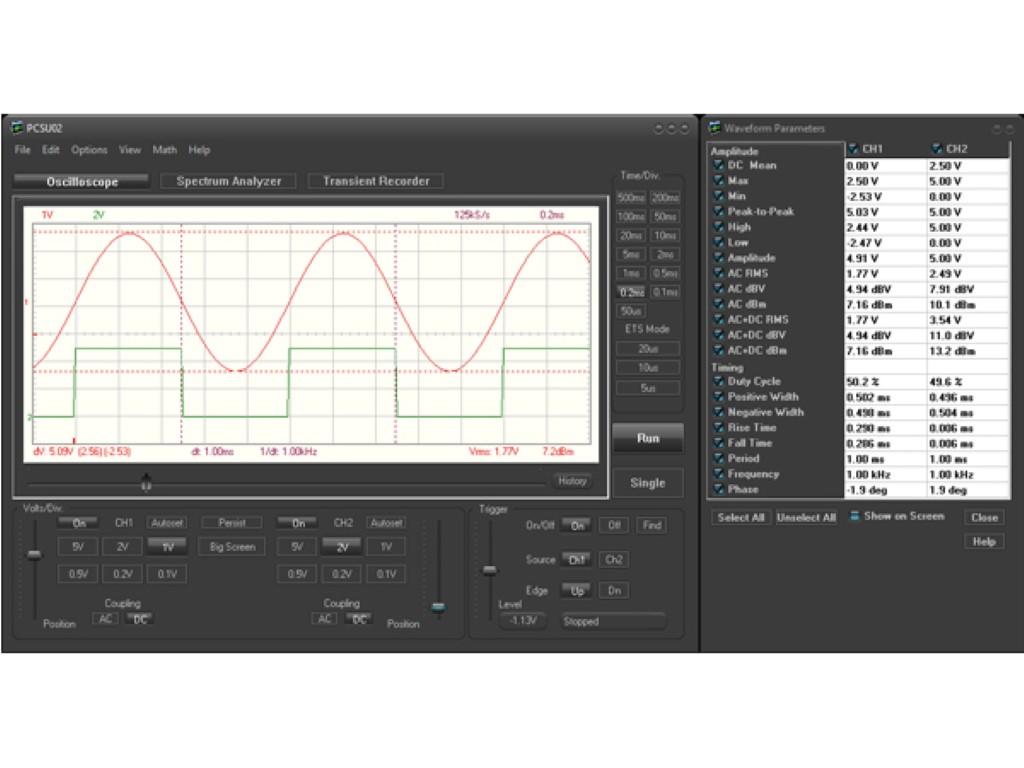 Neem contact opMet deze mini-oscilloscoop kan je elektrische signalen nauwkeurig meten, analyseren en visualiseren met behulp van je computer. Je kunt de vorm, amplitude en frequentie van signalen observeren en gedetailleerde metingen uitvoeren, zoals spanningswaarden en tijdsduur. De oscilloscoop biedt ook instelbare tijdsbasis en triggeringopties om specifieke gebeurtenissen vast te leggen. Met zijn compacte formaat en USB-aansluiting is het een handig instrument voor professionals, hobbyisten en studenten om gedetailleerde analyses uit te voeren, signalen te vergelijken en gegevens op te slaan voor verdere analyse en rapportage.