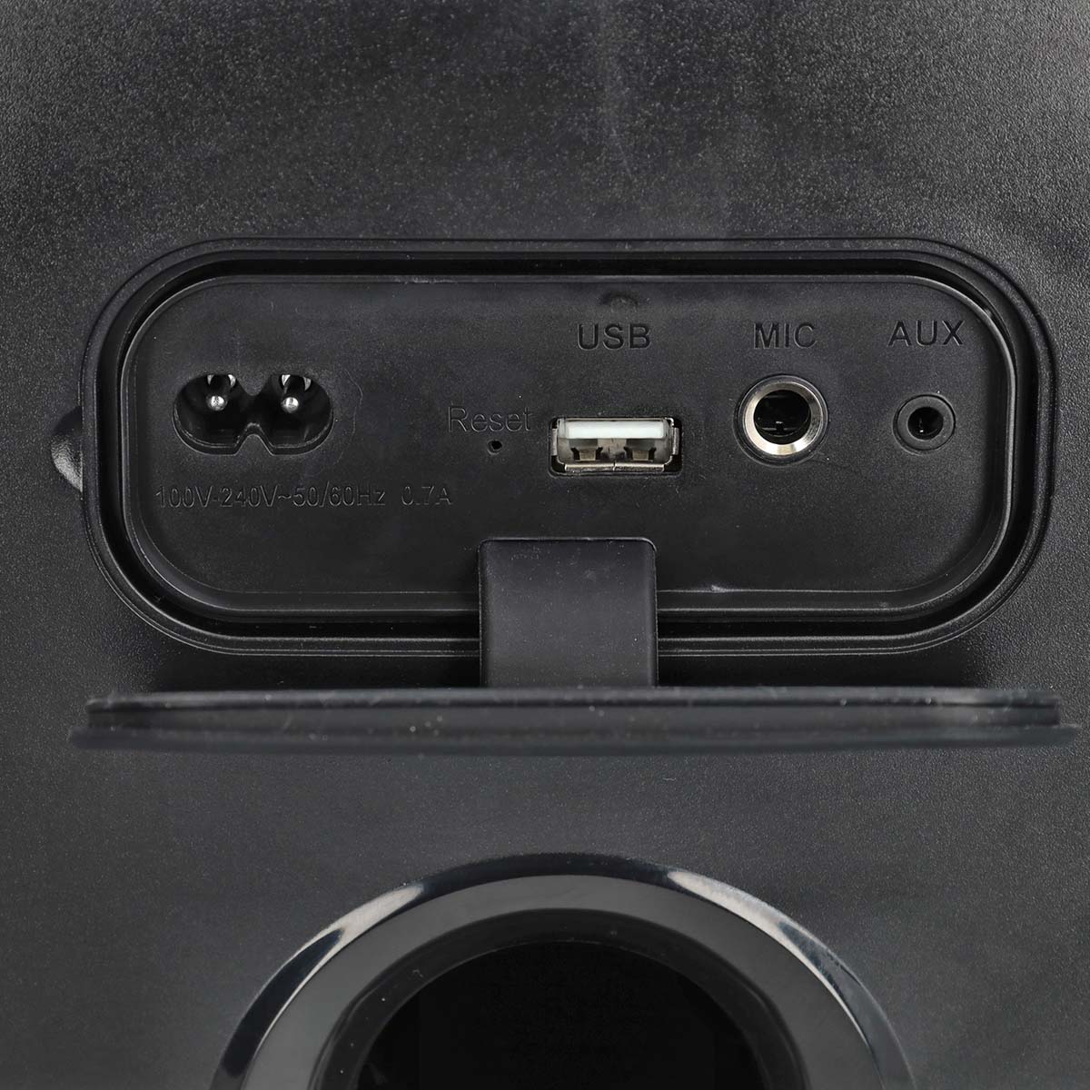 Meerdere Afspeelmogelijkheden: Naast Bluetooth beschikt de speaker over ingangen voor USB, Micro-SD en een AUX-aansluiting.