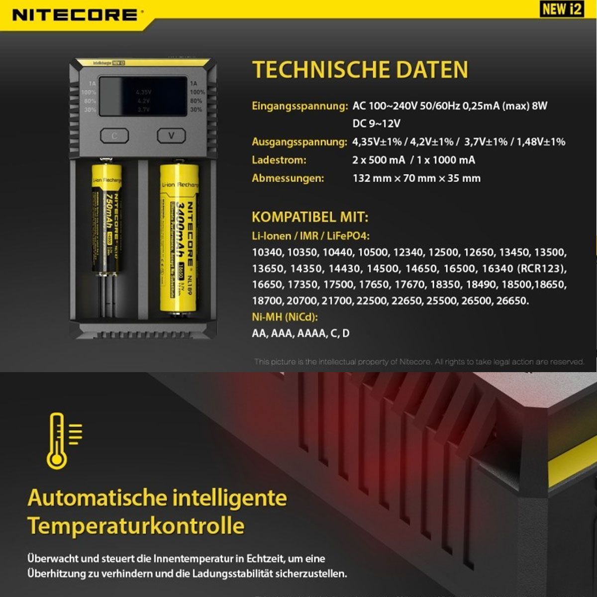 De NiteCore New i2 is een intelligente, microprocessor-gestuurde batterijlader die tot wel 100% sneller laadt dan zijn voorganger. Met een laadstroom tot 1000mA in één schacht hoeft u nooit lang te wachten tot uw batterijen weer vol zijn. Deze lader is de ultieme alles-in-één oplossing voor iedereen die zowel krachtige Li-ion cellen als standaard Ni-MH batterijen gebruikt.