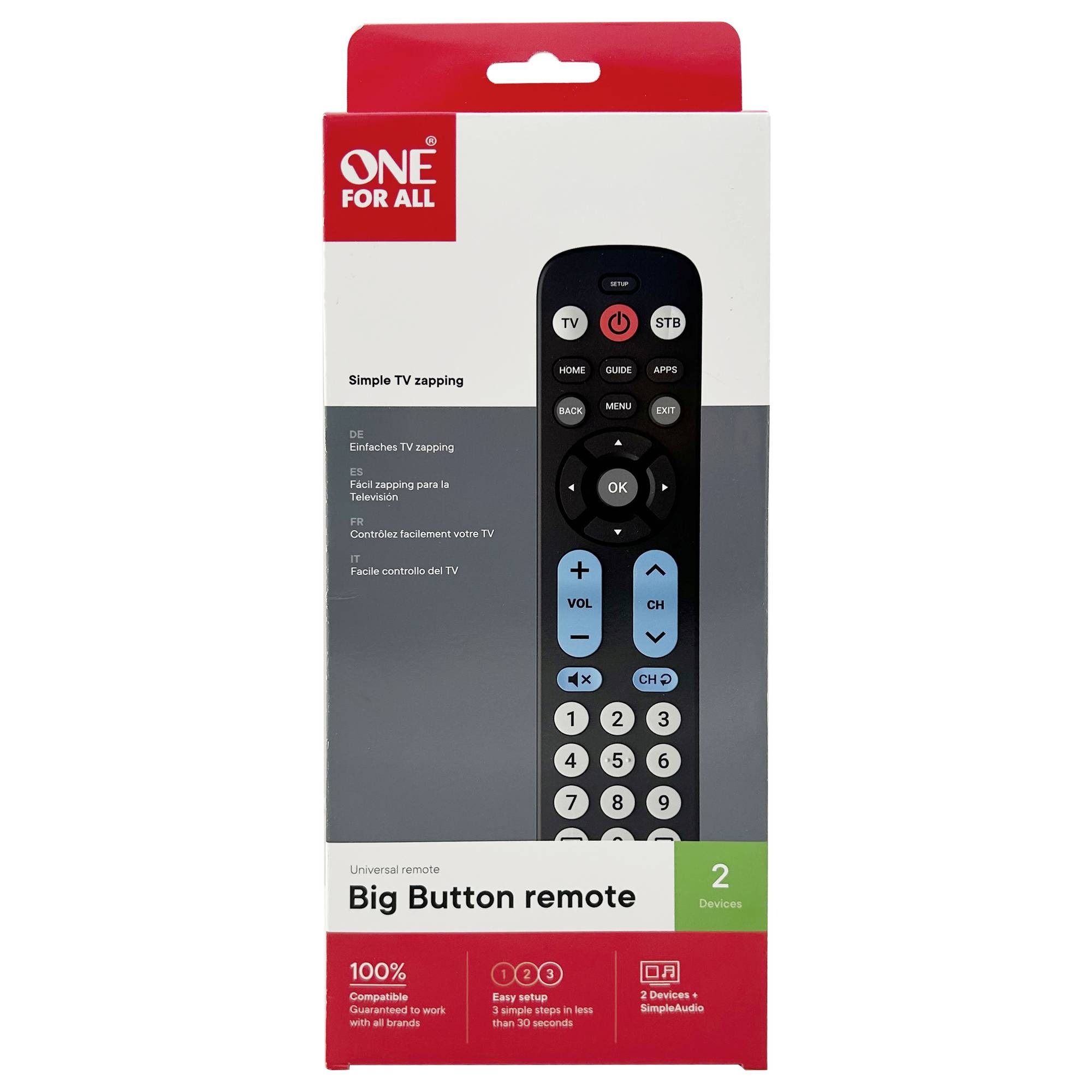 Zeg vaarwel tegen kleine knopjes en ingewikkelde menu’s! De One For All Big-Button-afstandsbediening is speciaal ontworpen voor iedereen die comfort, overzicht en gebruiksgemak wil bij het bedienen van zijn televisie of audiosysteem.