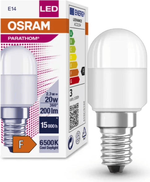Met een helder koel wit licht van 6500K zorgt deze LED-lamp voor een uitstekende zichtbaarheid van de inhoud van de koelkast. Het lage energieverbruik van slechts 2,3 watt maakt deze lamp bijzonder energiezuinig, terwijl de lange levensduur zorgt voor minimaal onderhoud. De lamp is bestand tegen lage temperaturen en schakelt direct op volle lichtsterkte in, ideaal voor koelkasttoepassingen.