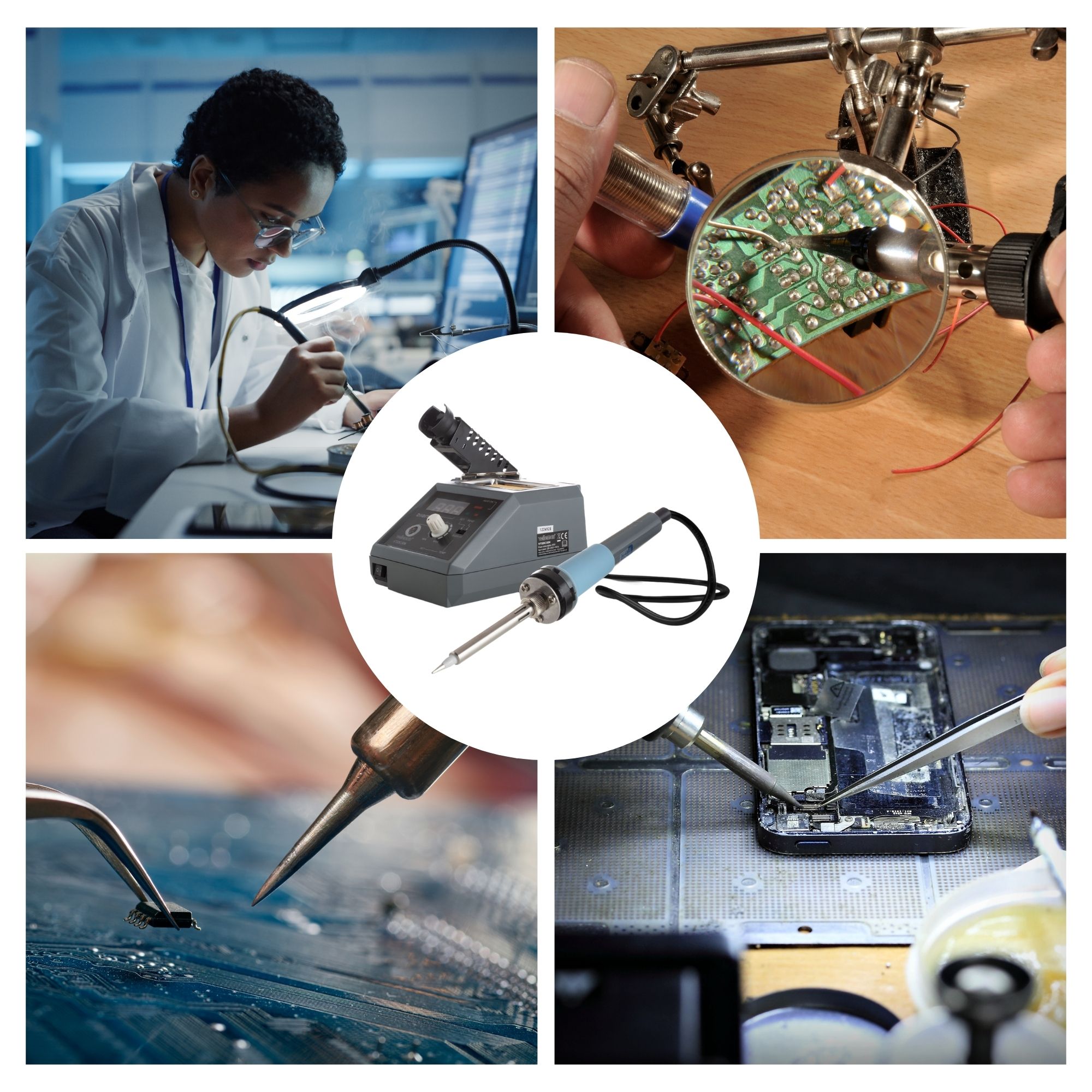 Het soldeerstation is geschikt voor allerlei doe-het-zelfprojecten voor de hobbyist, in scholen, werkplaatsen en laboratoria. Multi-inzetbaar voor het solderen en desolderen van printplaten, sieraden, muziekinstrumenten, horloges