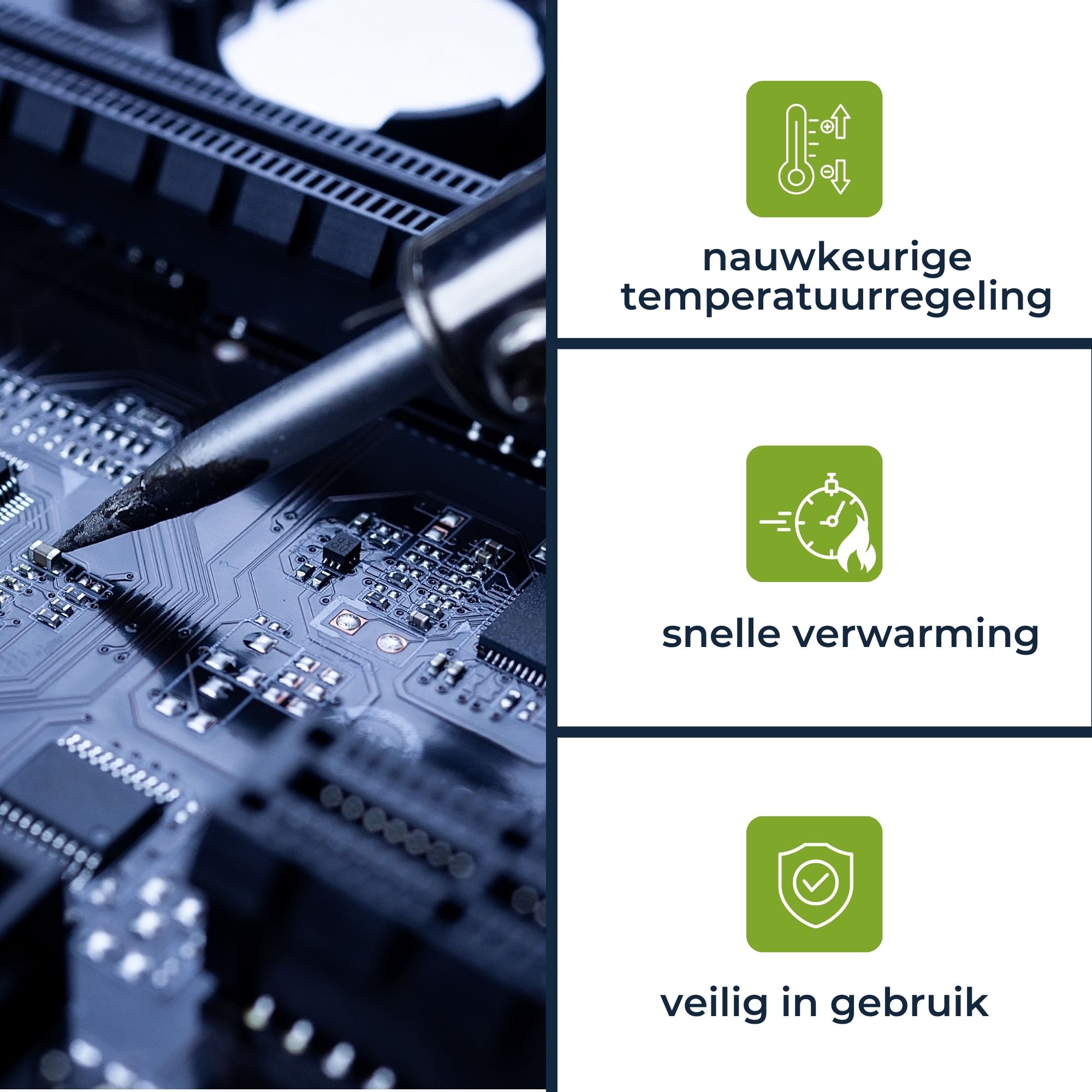 Dit solide soldeerstation is perfect voor zowel de professional als de doe-het-zelver en voldoet aan alle eisen om elektronische onderdelen eenvoudig en voorzichtig te solderen en te verwijderen.