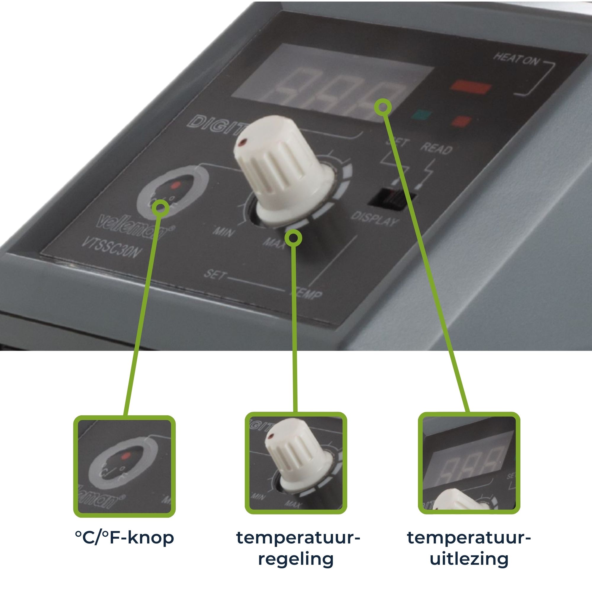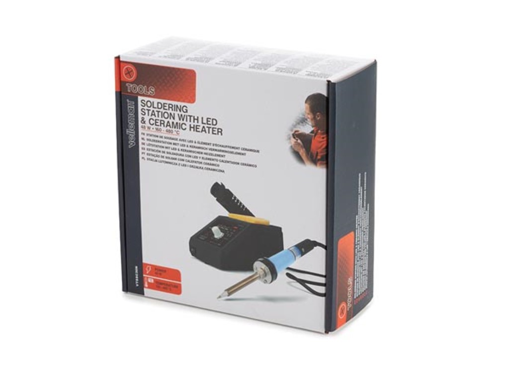 Dit soldeerstation heeft alle basisfuncties en is een veelzijdige hulp voor verschillende soldeertoepassingen. Geschikt voor algemene elektronica en herstellingen. Dit station is uitgerust met een manuele temperatuurregelaar, een aan-uitschakelaar met ledaanduiding, een led-display met digitale temperatuurschaal en een houder voor links- of rechtshandig gebruik.