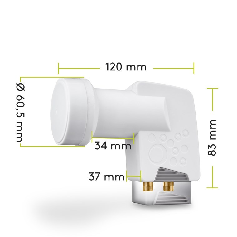 Met een laag ruisgetal van slechts 0,1 dB levert deze Twin LNB een bijzonder hoge signaalsterkte en stabiele ontvangst – zelfs bij slechte weersomstandigheden. De volledig gekapselde, weerbestendige behuizing en de vergulde F-connectoren met uittrekbare vochtbescherming zorgen voor een lange levensduur en betrouwbare prestaties.