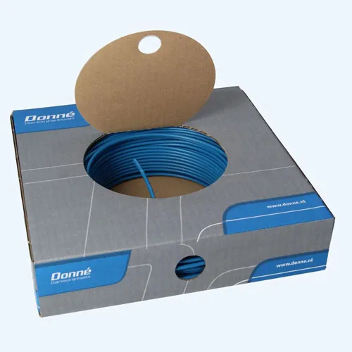 Een volle doos bevat 100 meter draad, maar de draad is uiteraard per strekkende meter te bestellen.